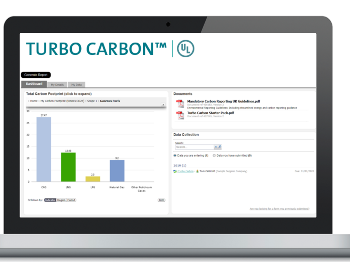 UL Turbo Carbon software enables you to provide critical carbon emissions data and generate detailed reports for a range of audiences and submission requirements. Designed for use exclusively by smaller businesses, Turbo Carbon is easy to use and makes carbon reporting more efficient and cost-effective.
